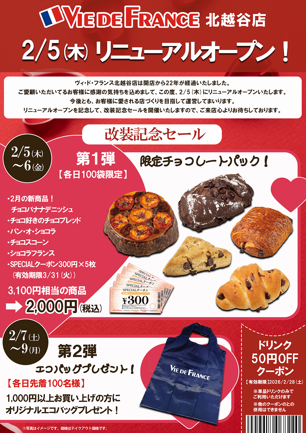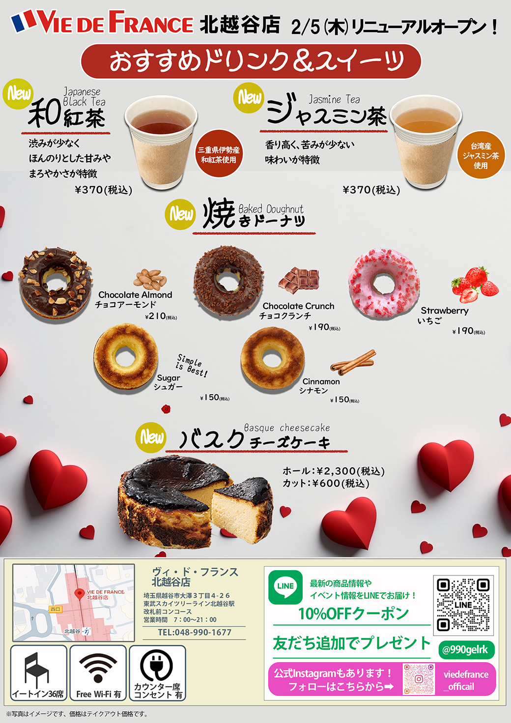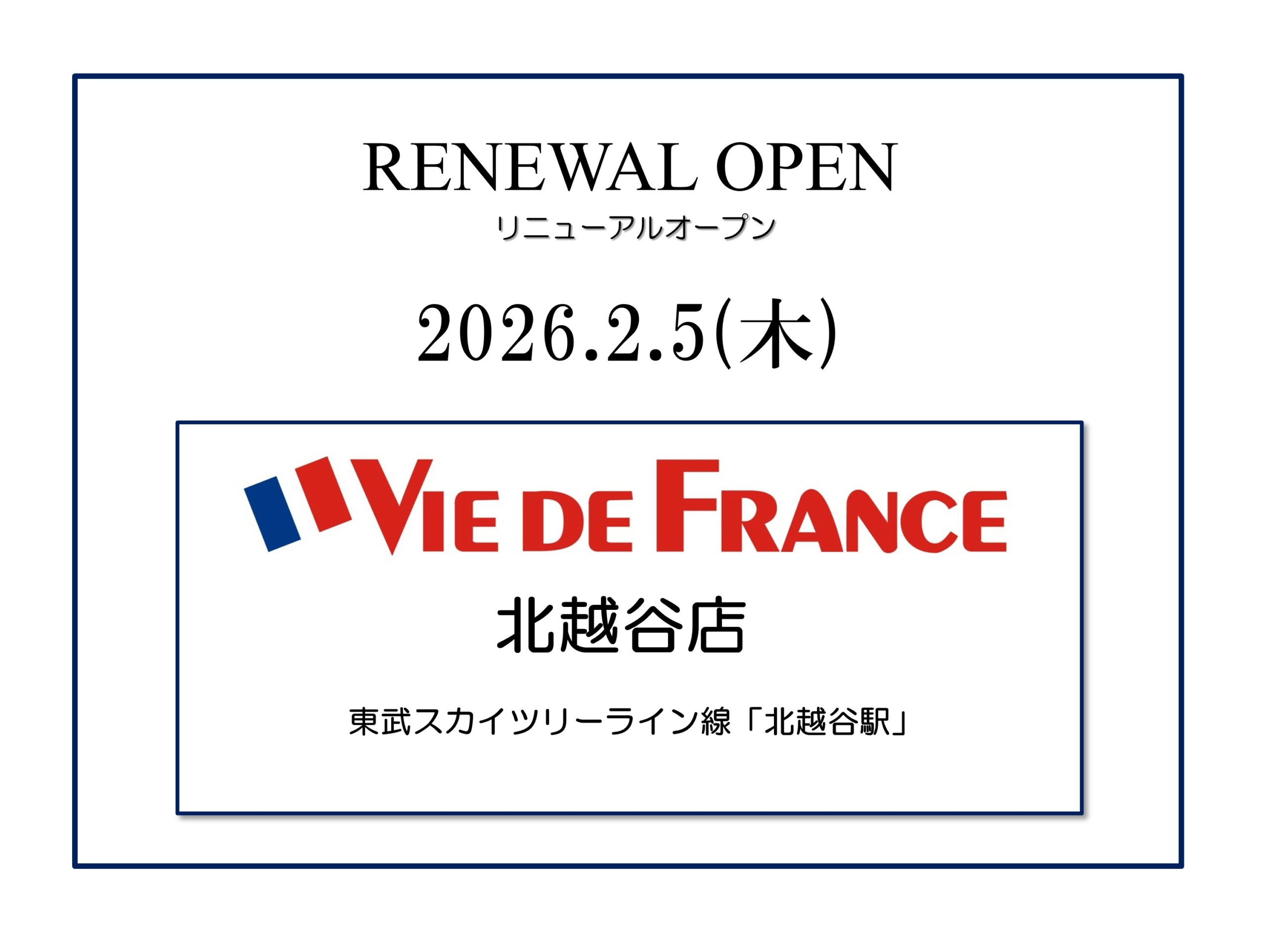 この度ヴィ・ド・フランス北越谷店は、2/5(木)にリニューアルオープンいたします。