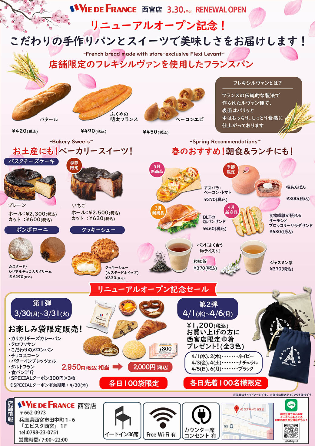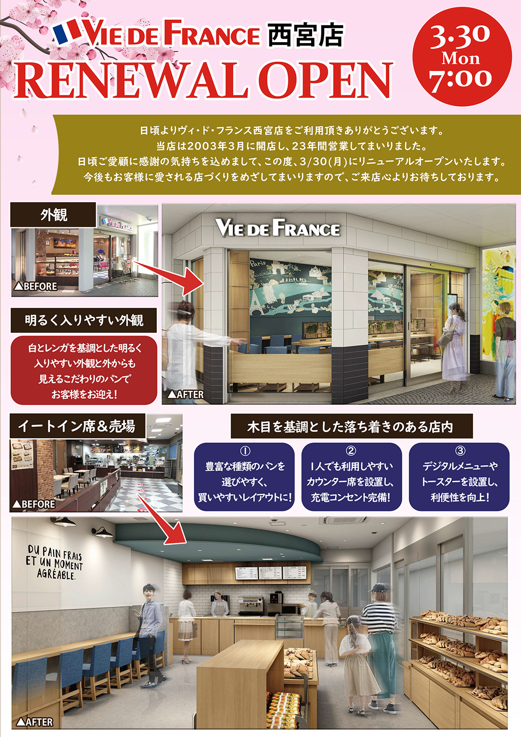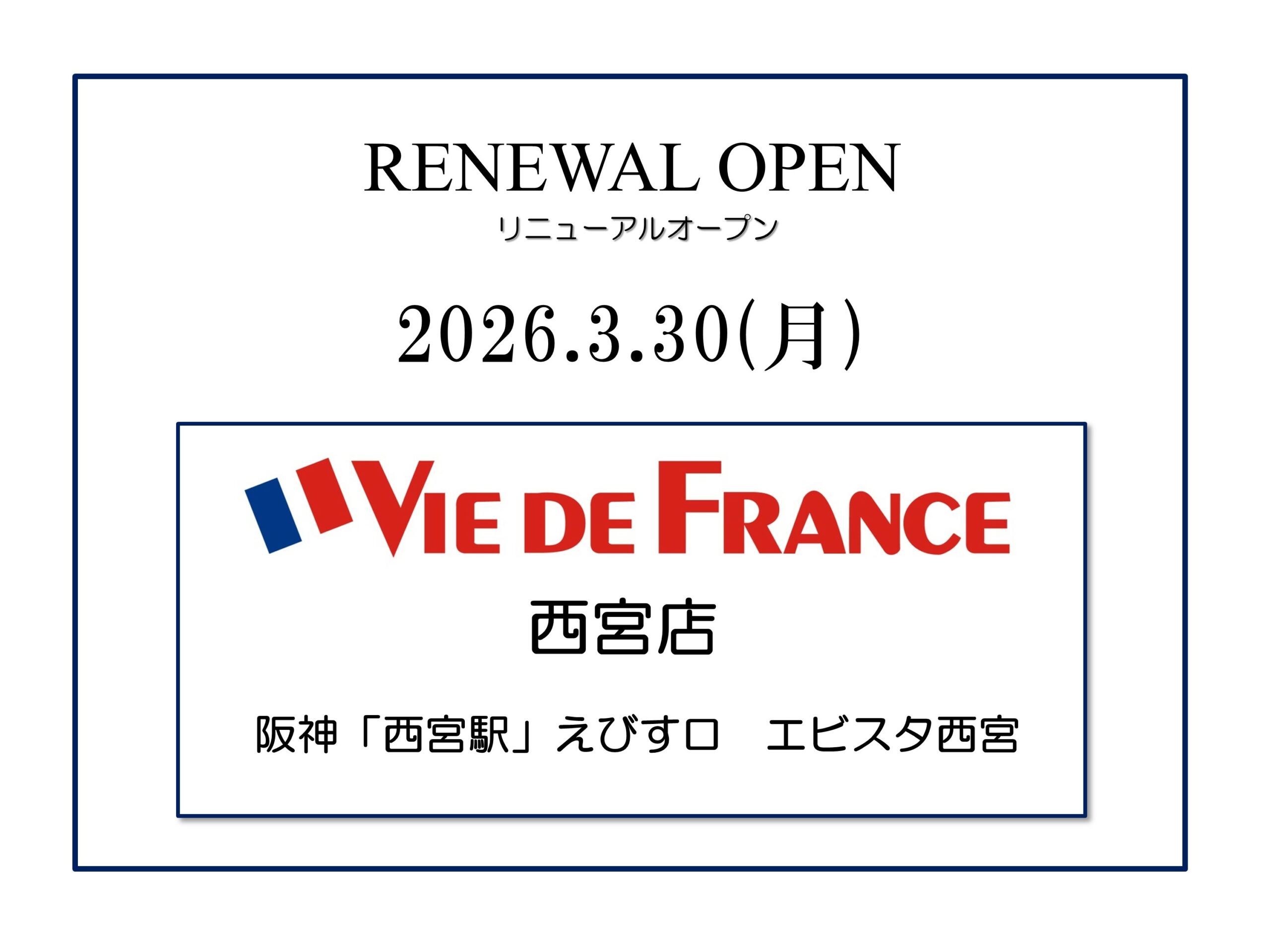 この度ヴィ・ド・フランス西宮店は、3/30(月)にリニューアルオープンいたします。