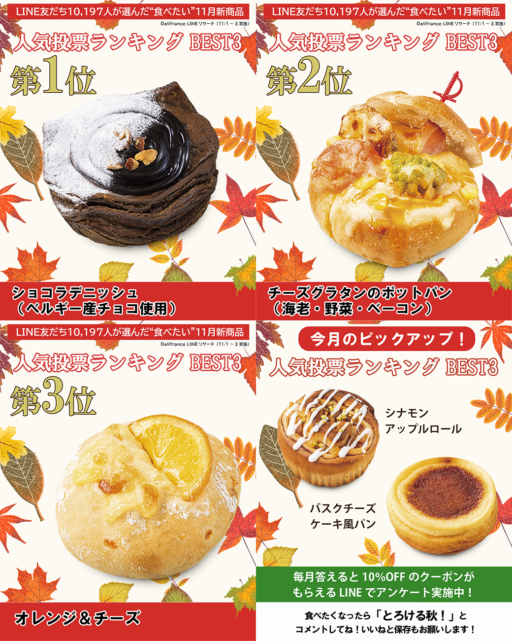 LINE友だち10,197人が選んだ一番“食べたい”11月新商品「人気投票ランキング」を発表します。