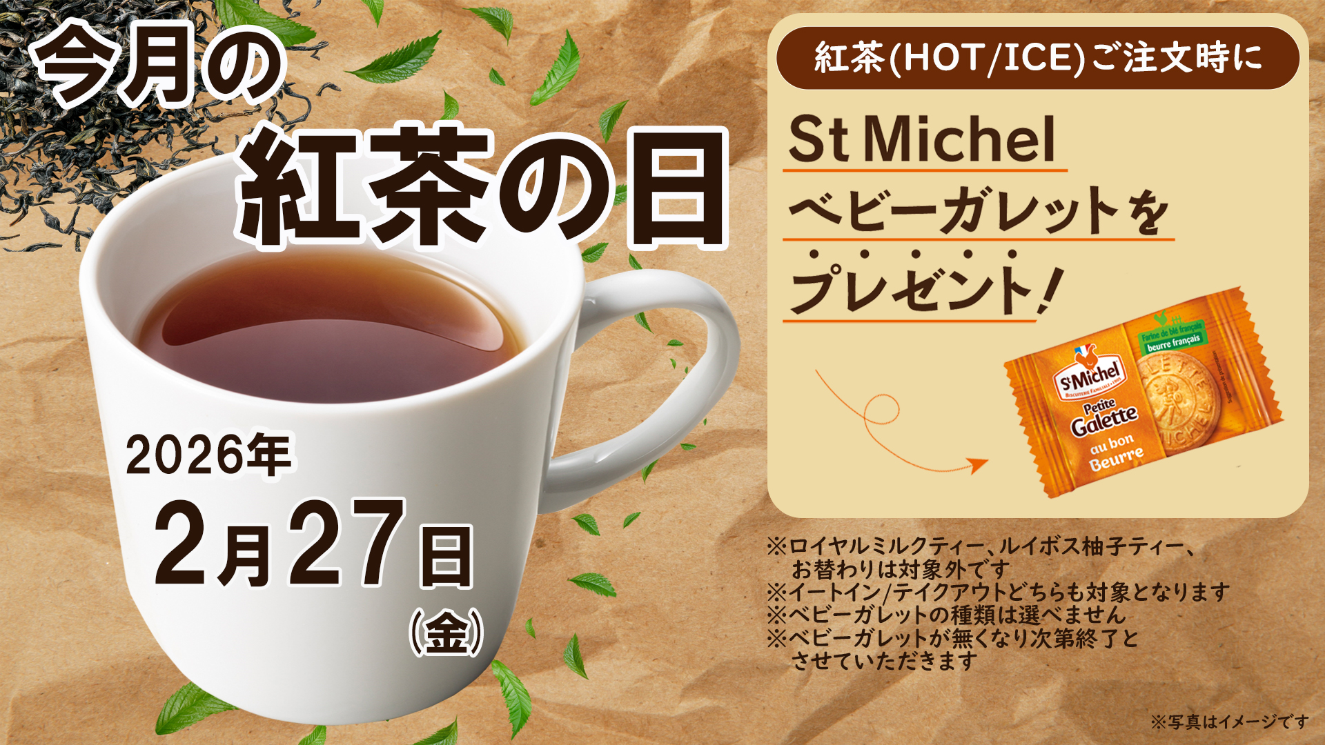 紅茶の日の時は、紅茶(HOT/ICE)をご注文で
