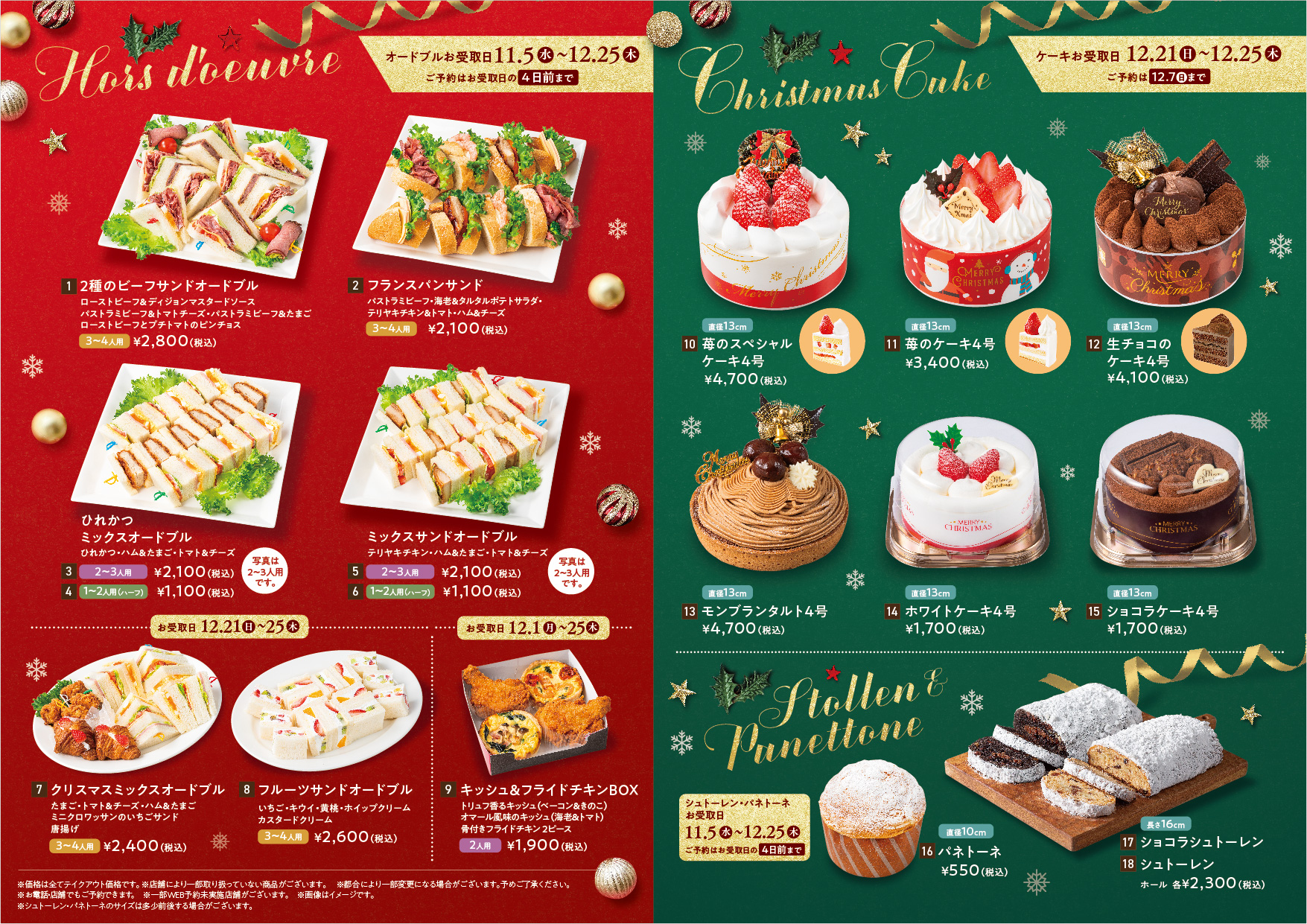 ※クリスマスミックスオードブル・フルーツサンドオードブルのみ受取期間:12/21(日)~12/25(木)となっております