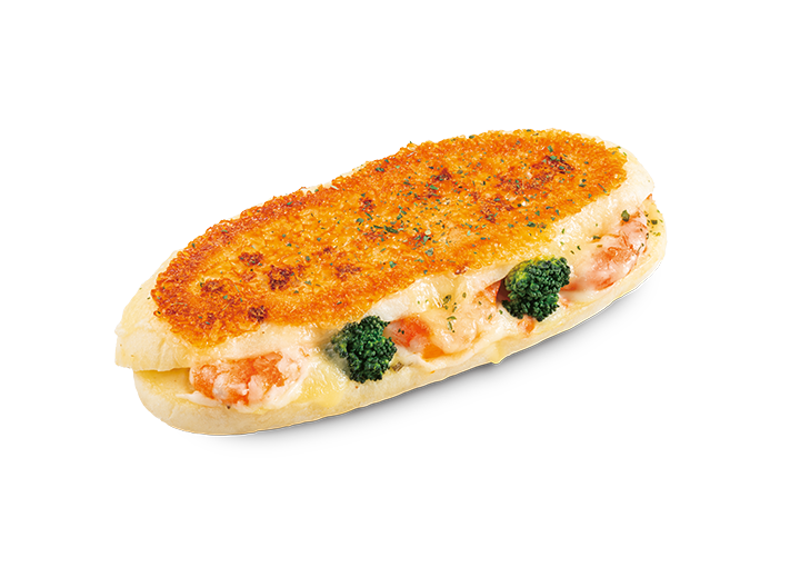 ハーブ香るペイザンヌドレッシングで味付けしたポテトサラダ・フライドオニオン・海老・ブロッコリーをサンドしたパニーニ