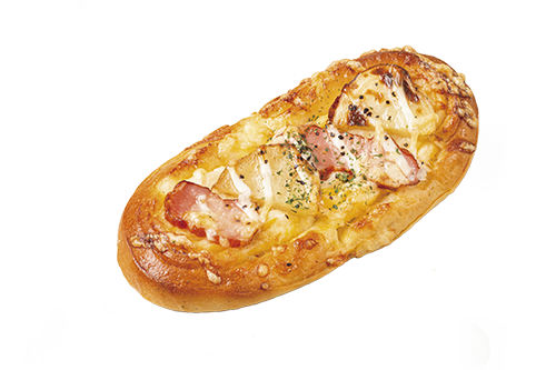 ほんのりマヨネーズ香る生地にポテトサラダ、燻しベーコン、ポテト、北海道産の3種類のチーズをトッピング。ジャーマンポテト風に仕上げました。